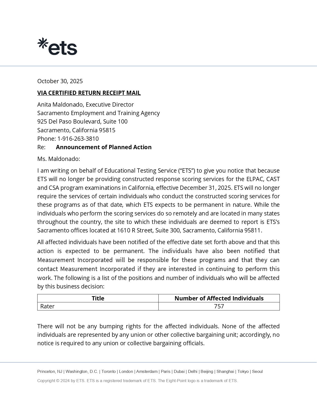The Educational Testing Service will lay off 757 employees at the end of the year. According to a report in the San Francisco Chronicle, this comes as Measurement, Inc takes over the scoring of several tests included in ETS’s longstanding CAASPP-ELPAC contract.